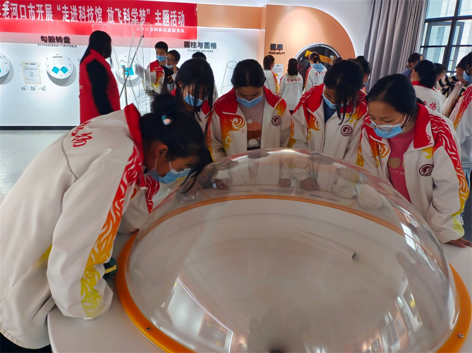 2022年11月16日,老河口市科協(xié)開展“走進科技館 放飛科學(xué)夢”主題活動。老河口市第四中學(xué)學(xué)生來到科技館參觀,工作人員在科學(xué)探趣展廳詳細講解了勾股定理,通過轉(zhuǎn)動轉(zhuǎn)盤模型中的液體,觀察三角形三條邊容器內(nèi)液體體積的關(guān)系。
