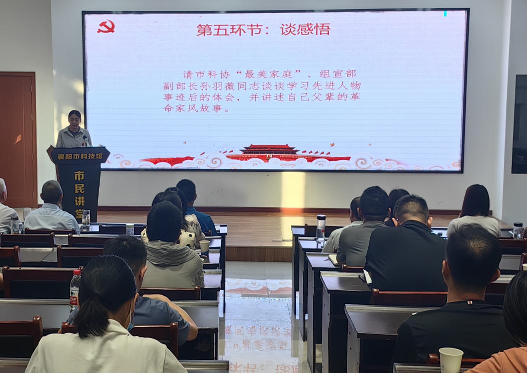 談感悟環(huán)節(jié)中,市三八紅旗手、市科技館館長王琰璘同志和市科協(xié)“最美家庭”、組宣部副部長孫羽薇同志分別分享了學(xué)習(xí)先進(jìn)人物事跡后的體會和自己的故事。無論是“愛心媽媽”結(jié)對幫扶故事,還是父輩紅色革命故事,大家聽后都深受感動。