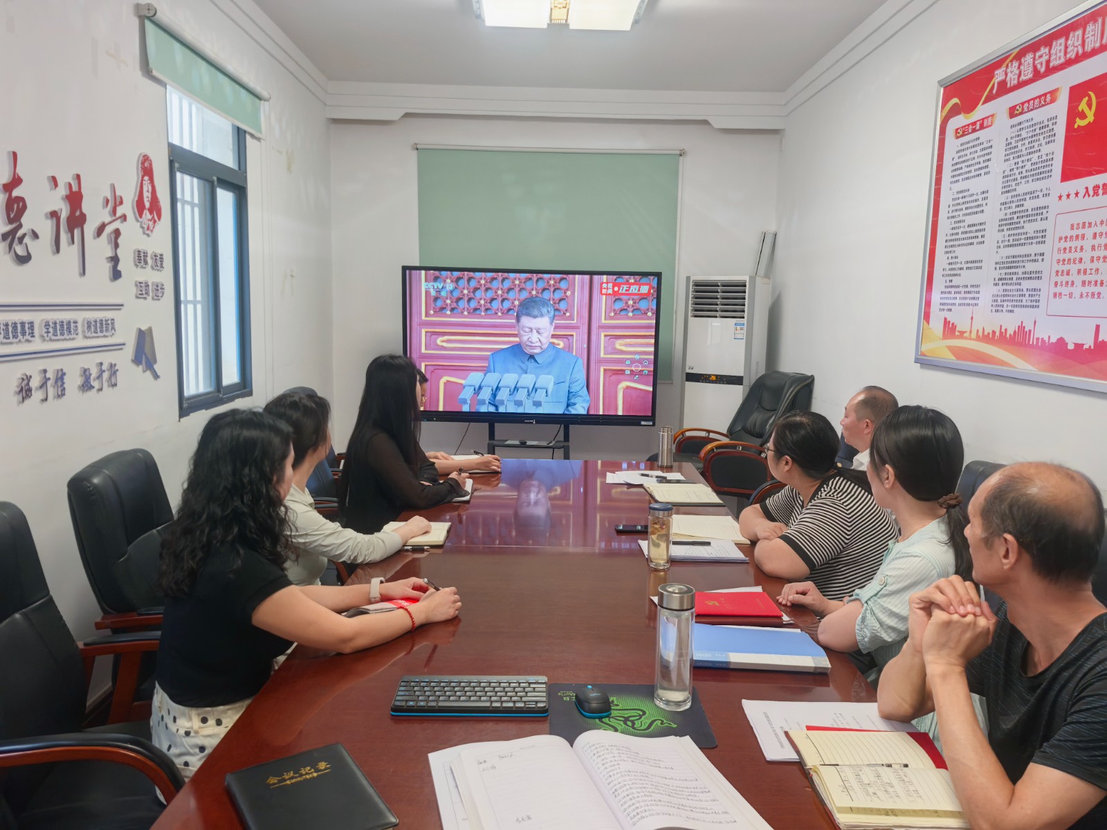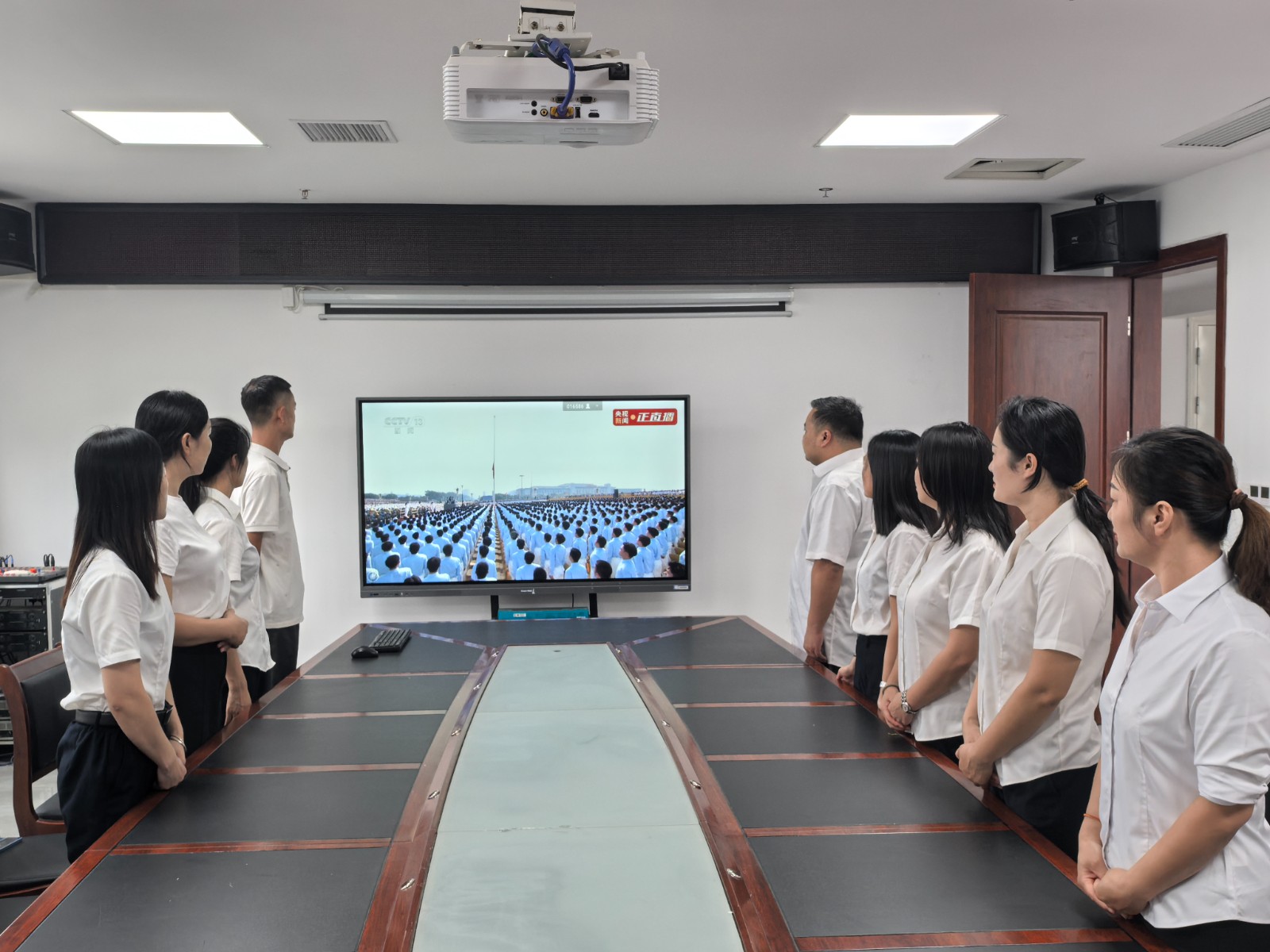 上午9時,全體黨員干部整齊列座,通過電視直播同步觀看閱兵儀式。威武的軍隊方陣、先進的武器裝備、昂揚的士氣風貌,生動展現(xiàn)了國家綜合實力和國防現(xiàn)代化建設(shè)成就。