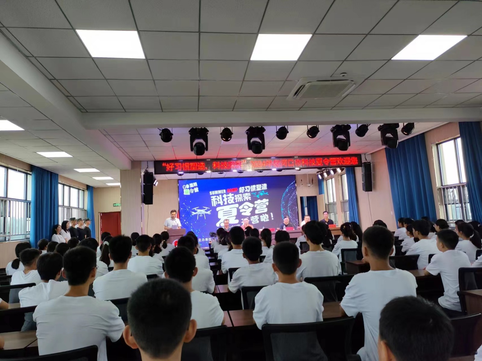 7月29日,以“好習(xí)慣塑造+科技探索”為主題的科技夏令營(yíng)活動(dòng)在老河口市一中初中部順利開營(yíng)。本次夏令營(yíng)活動(dòng)由老河口市科協(xié)和市教育局聯(lián)合舉辦。市科協(xié)和市教育局相關(guān)領(lǐng)導(dǎo)出席了夏令營(yíng)開營(yíng)儀式。
