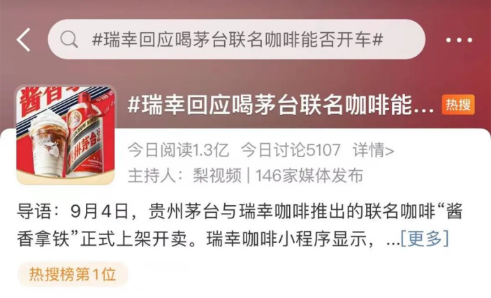 昨天,貴州茅臺(tái)與瑞幸咖啡推出的聯(lián)名咖啡“醬香拿鐵 ”正式開賣,剛上線就在微博、朋友圈中被不斷刷屏。