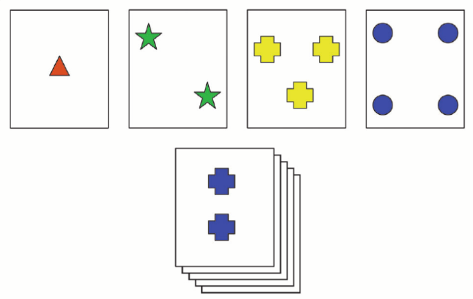 被試需要根據(jù)一定的規(guī)則對卡片進(jìn)行分類,例如按顏色、形狀或圖案等,但是隨著任務(wù)的進(jìn)行,規(guī)則會在不告知被試的情況下變更,如果被試還是用原來的規(guī)則對新的卡片進(jìn)行分類,說明發(fā)生了持續(xù)性錯誤。