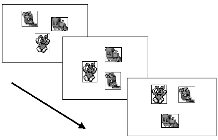 被試面對一組物品,要求在一系列輪次中按照特定規(guī)則依次選擇物品,然后在下一輪次中選擇另一個物品,同時要避免選擇以前選擇過的物品。如果被試選擇了之前選過的物品,說明犯了持續(xù)性錯誤。
